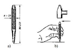 + Đặt đầu nhọn của mũi chấm dấu đúng vào đường vạch và hơi nghiêng về phía trước của người chấm dấu. Sau đó đặt mũi chấm dấu thẳng đứng với mặt phẳng của phôi và dùng búa đánh nhẹ lên đầu trên của mũi chấm dấu. Chấm dấu điểm tiếp theo cũng làm tương tự như vậy.