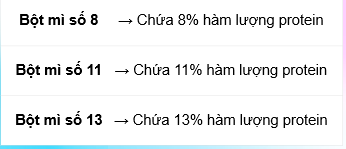 Bột mì số 8 vì loại bột này chứa khoảng 8% hàm lượng protein trong thành phần và để phân biệt các loại bột mì chứa tỷ lệ protein cao hơn như bột mì số 11, 13… Việc phân biệt đúng từng loại bột mì để sử dụng cho các món bánh tương ứng giúp thành phẩm đạt yêu cầu cao nhất về kết cấu - hình dáng - màu sắc - mùi vị.