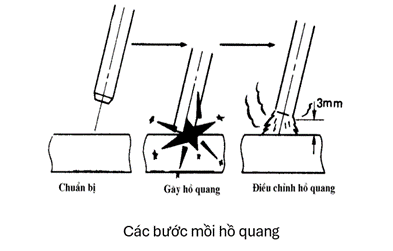 - Mồi hồ quang theo 2 cách, chiều dài hồ quang 2 - 4 mm