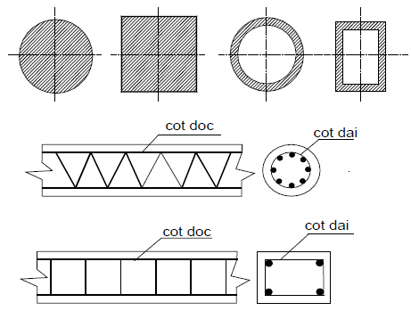Một ví dụ để làm rõ hơn về cách cấu tạo một Cấu kiện BTCT như sau: Khi cấu kiện chịu lực nén đúng tâm thì hình dạng mặt cắt thường chọn đối xứng như mặt cắt tròn, vuông, chữ